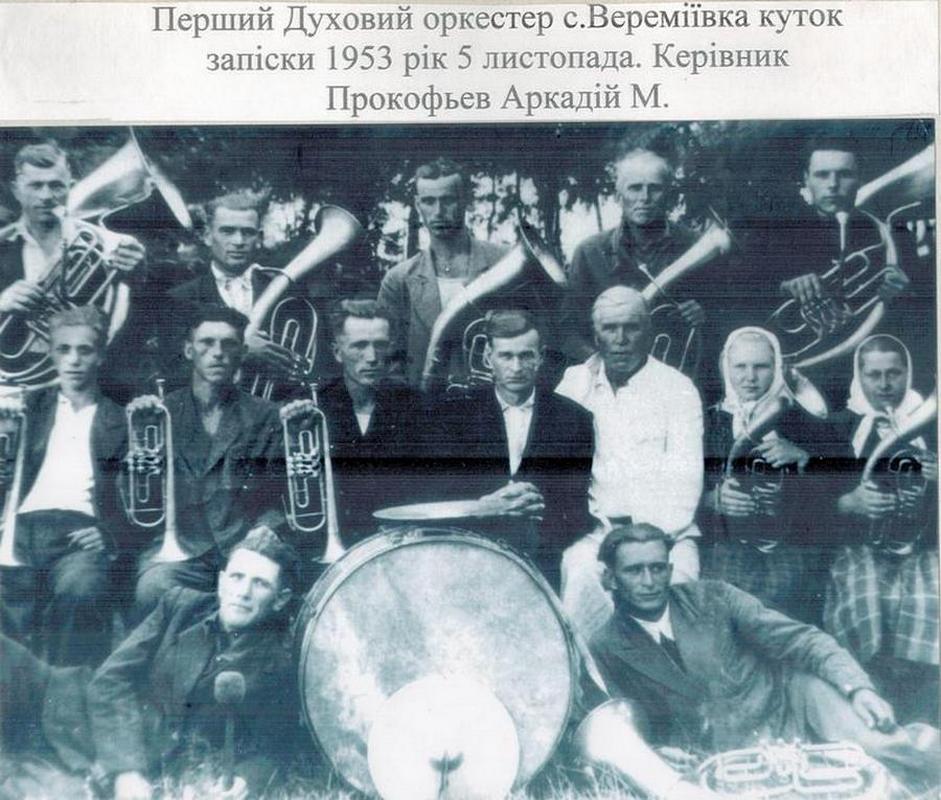 У 1952 році восени приїжджав у Вереміївку на куток Запіски Прокофьев Аркадій Миколайович, сам за професією керівник духового оркестру, уродженець Сумської області, міста Шостки.